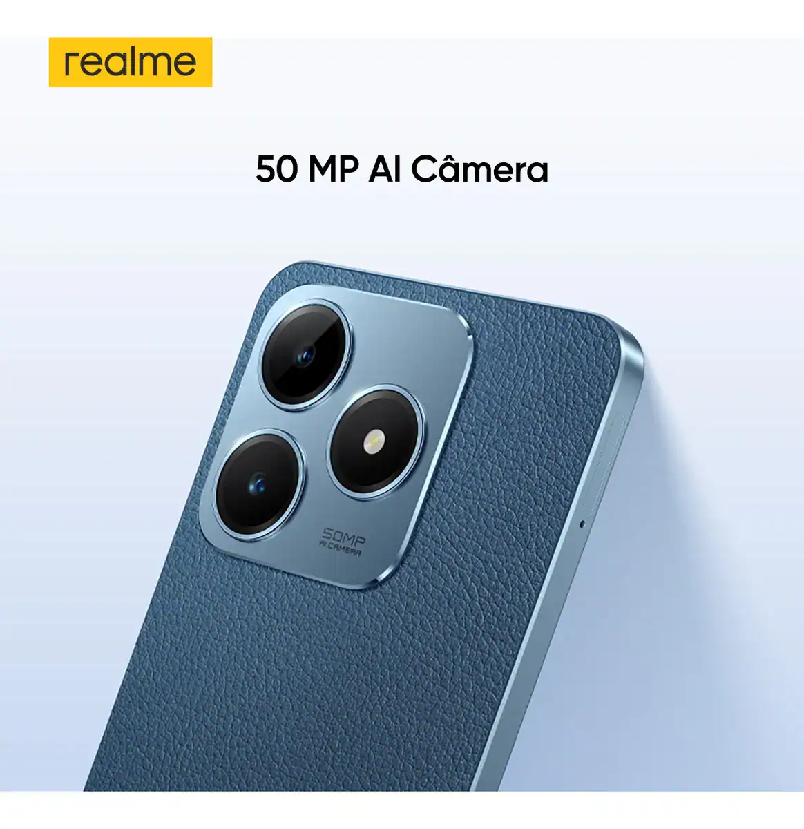 Realme C63 com 6GB RAM + RAM Dinâmica e 128GB de armazenamento.